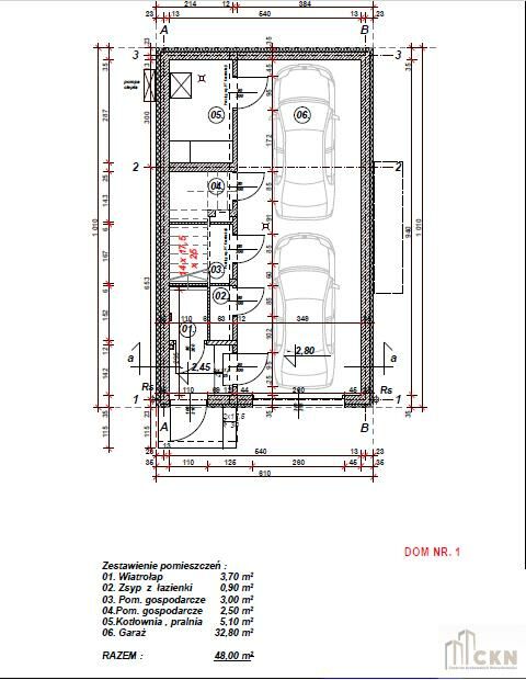 PARTER - wiatrołap, pomieszczenie gospodarcze, pomieszczenie gospodarcze, garaż, pralnia - razem 48 m2;